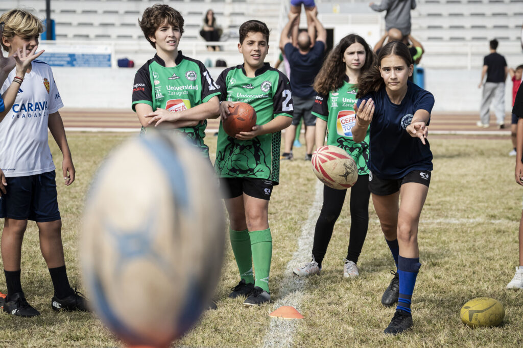 Grandes y pequeños disfrutaron de una mañana de rugby con juegos y diversión en el José Manuel Juan Boix de la mano del CD Universitario Rugby Zaragoza.